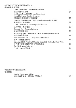 NEWS SOCIAL INVESTMENT PROGRAM 新消息 盛世社會發展項目 Kid’s Movie Day CESL Asia Warms Local Seniors this Fall 盛 世 兒 童 電 影 日 1 盛世集團深秋送暖 24 How to ‘Write’ a City CESL Asia Joined 2014 Bocce Game Event 悉心共「抒」新城市 5 Hosted by Macau Special Olympics Heads Together for New Prospects 2014盛世關愛特奧共融滾球賽 26 聚首一堂 共建輝煌 6 Palatable Experience for CESL Asia’s Parents and their Kids Selected News 歡樂時光,共製甜點 27 精 選 新 聞 7 CESL Asia Leads in Spreading Love and Care 45 Tracker Connection at Portugal CPV Solar Power Plants Done 以身作則,關愛社區 29 葡萄牙發電廠初步45個追蹤系統裝嵌工程大致完工 9 Seasonal Fun - Autumn Gathering 盛世秋季池畔派對 30 CORPORATE & BUSINESS DEVELOPMENT A Record-breaking Moment for CESL Asia Dragon Boat Team 公司及業務發展 盛世龍舟隊創佳績 32 View & Feel: MPS’s Project in Taipa Pequena Afoot New Insurer for Staff’s Group Medical Insurance 錦繡澳門:盛世集團小潭山觀景台項目如期動工 10 新員工團體醫療保險 33 Striving for the Best Generous CESL Asia Staff Member Open Bids for Lucky Draw Prize 追 求 優 質 服 務 1 2 盛世員工慷慨捐贈信用卡抽獎活動獎品 33 The CESL Asia Challenge 「 盛 」Like有 獎 遊 戲 3 4 WISDOM OF THE SEASON 智慧錦囊 Tips for Pleasurable Hiking 郊遊前做足準備 玩得開心至醒係你 35