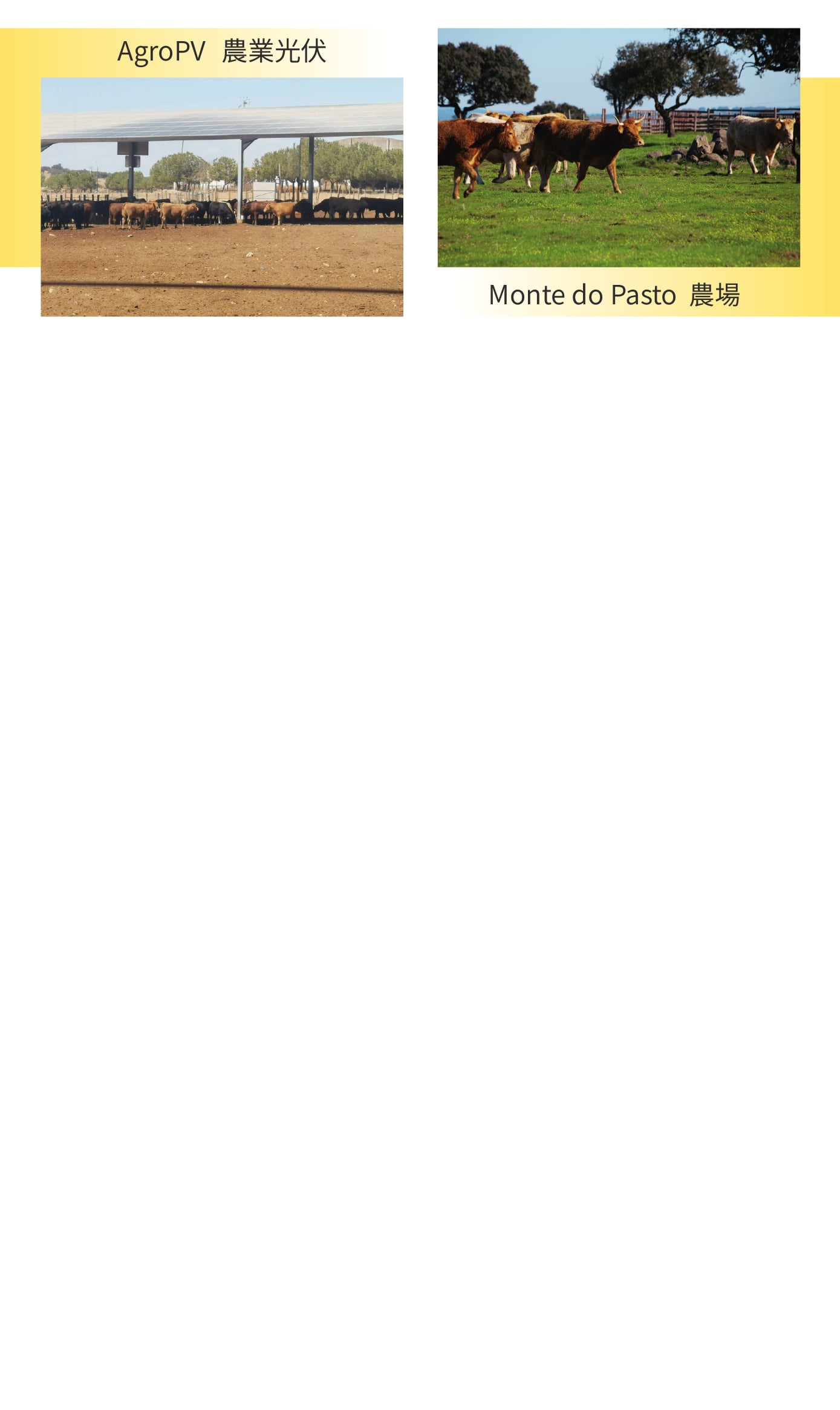 do Pasto農場率先落地,成功結合農業與太陽能發電技術。該技術採用高聚光光伏技術生產再生能源,同時為牲畜提供遮蔭環境,減少高温壓力,有效提升土地的氣候韌性與生態效益,展現農業科技融合轉型的創新實踐。